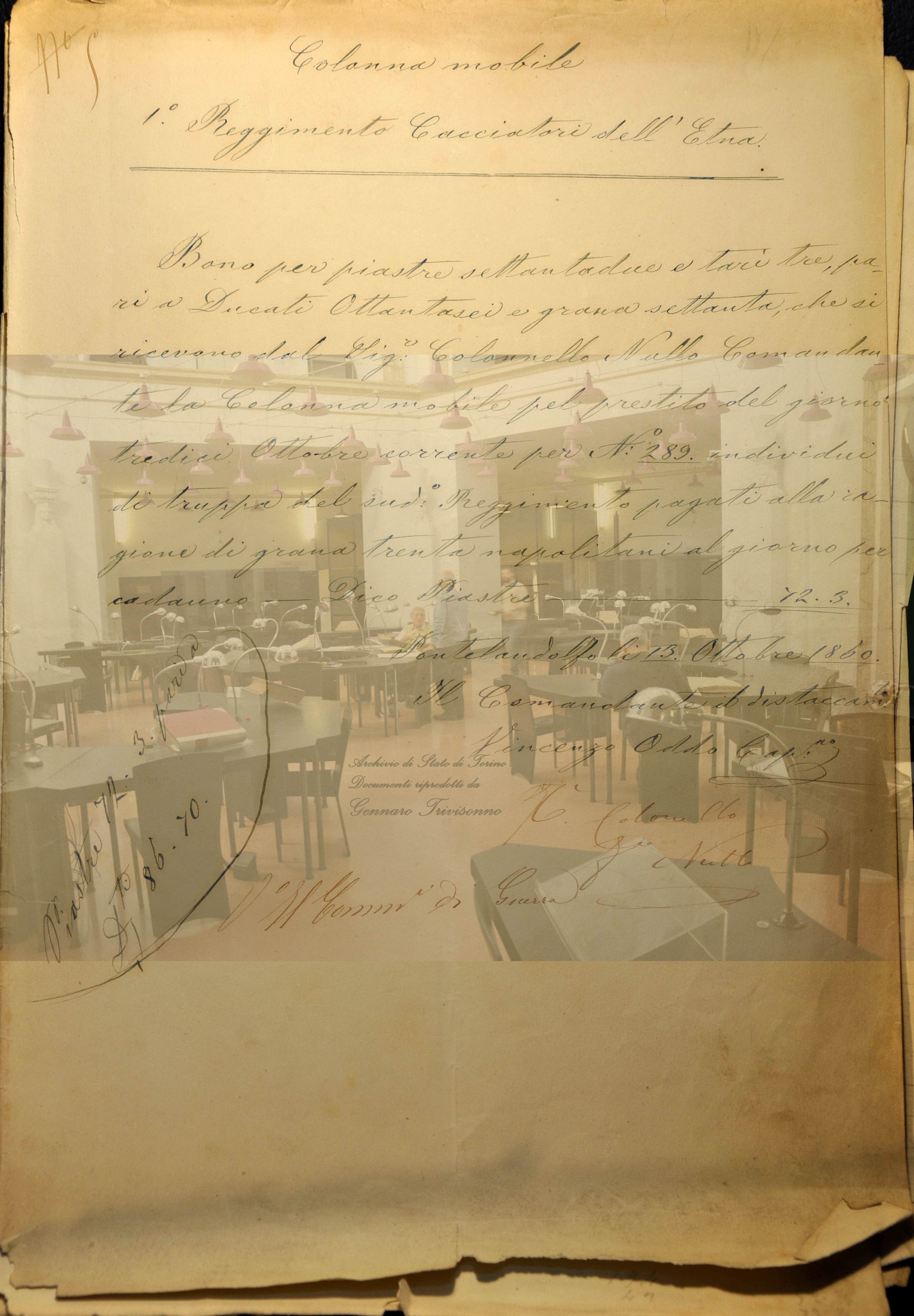 Colonna Mobile 1° Reggimento Cacciatori dell’Etna – Buono per piastre 72 e tari 3